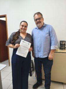 Entrega de documento técnico à secretária de Saúde de Candeias, Daniela,